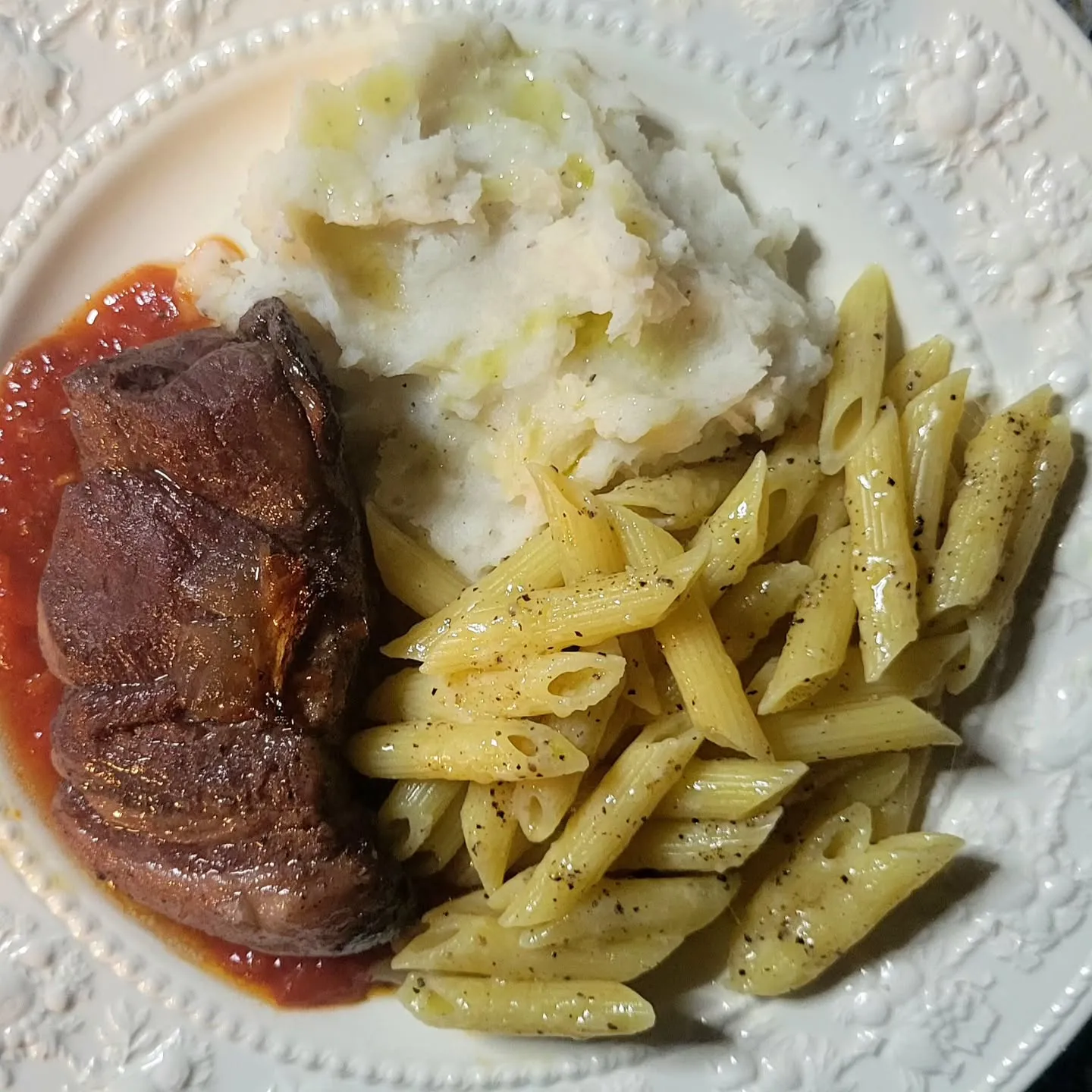 パスタ、お肉等ワンプレートに盛り付けたスタイル