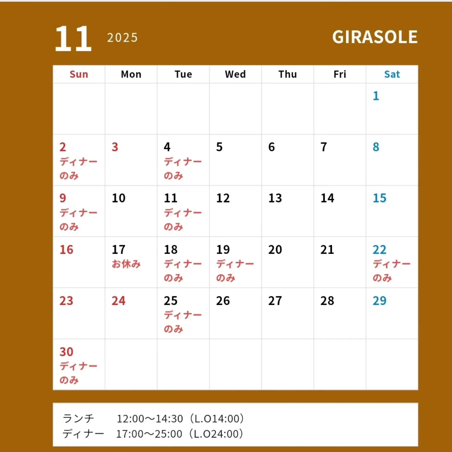 11月後半のスケジュールはこちらです