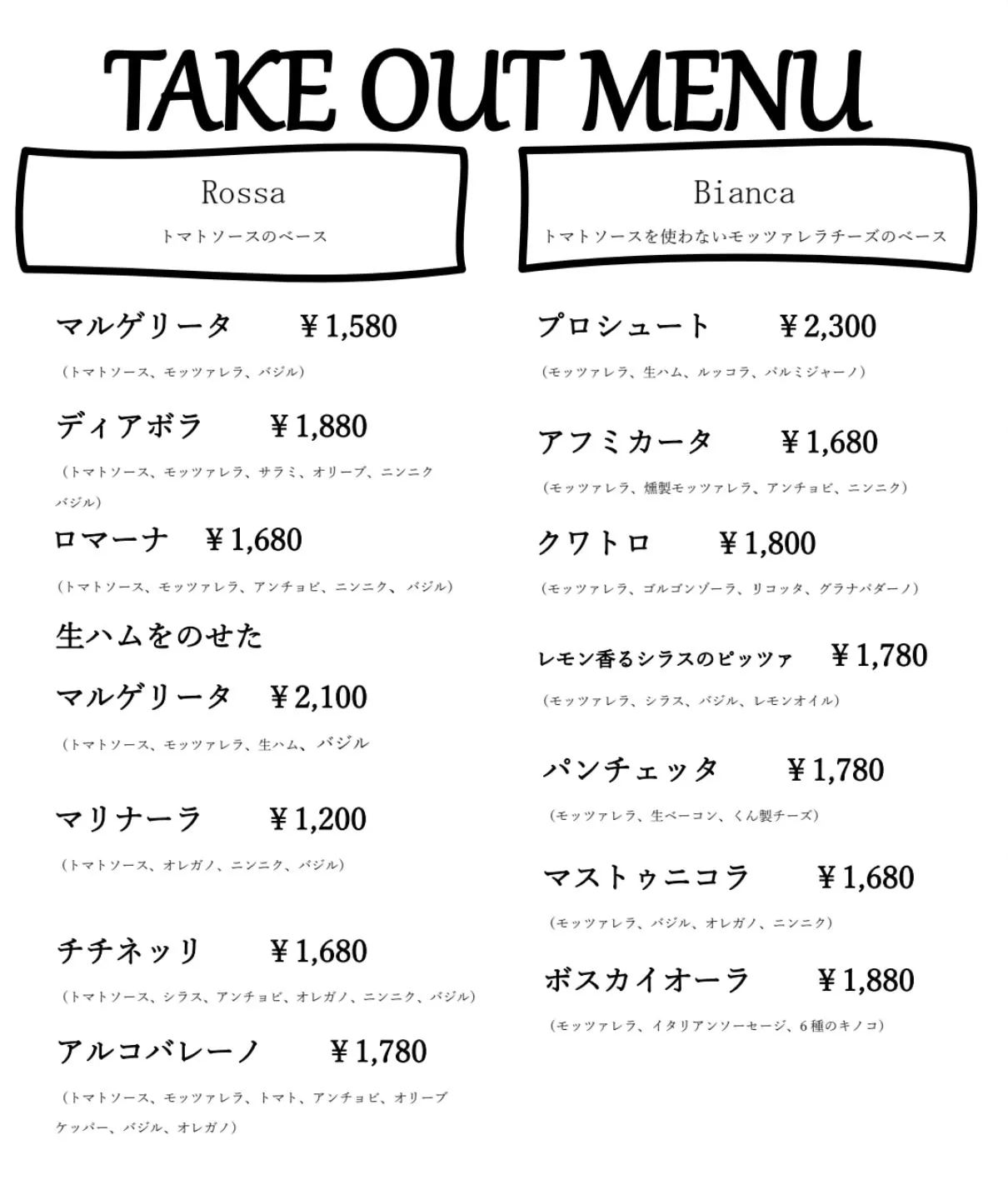 テイクアウトメニュー