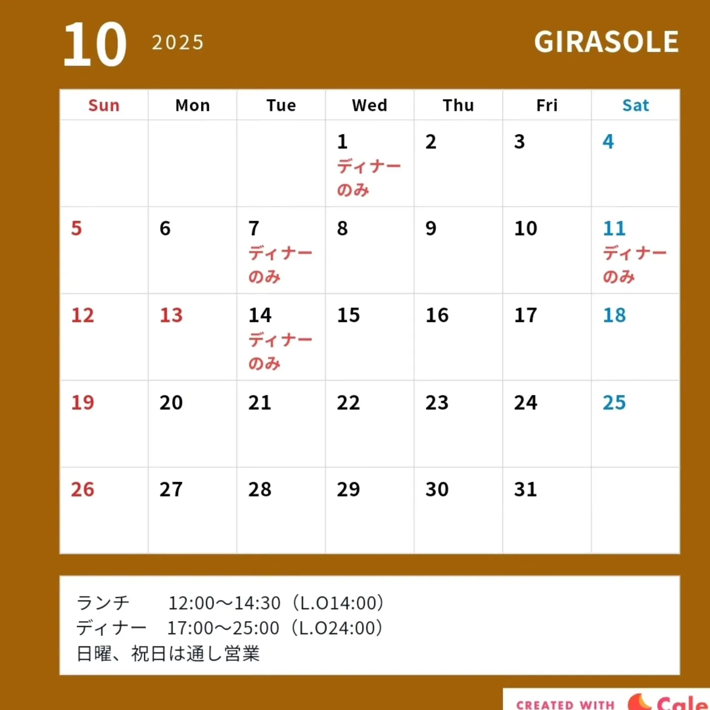 10/1~10/15の営業スケジュールです 10/1~10/15の営業スケジュールです10月よりハイライトではなくて投稿にピン留めしますのでよろしくお願いいたしますいっぱいシフトを出してくれる素晴らしいスタッフのおかげでランチの頻度を増やすこと…
