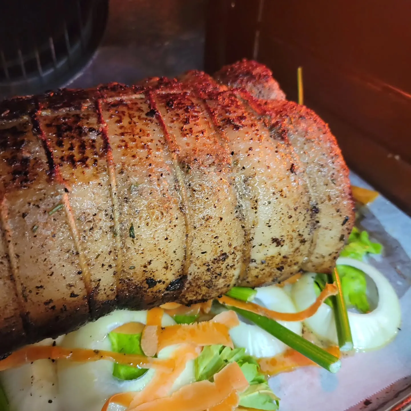 ポルケッタ焼けましたー ポルケッタ焼けましたーイタリア版ローストポークというかパッと見はチャーシュー10月3日(金)はお時間によってはお席ご案内できますのでお電話いただけると助かります!Web予約はプロフィールから豊洲の…